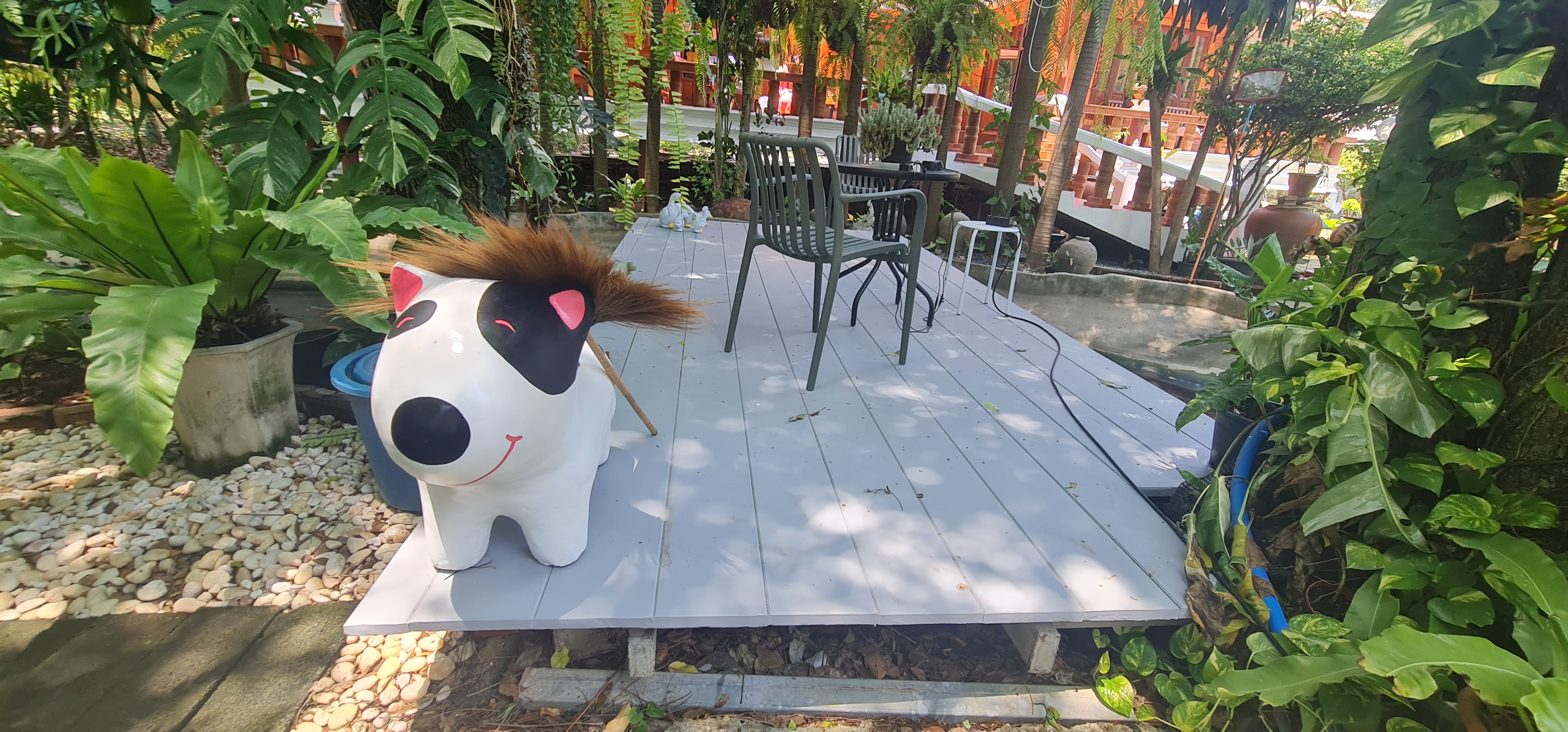 Immerse yourself in nature with ducks, bananas, dogs, mangoes, and wild monkeys around.